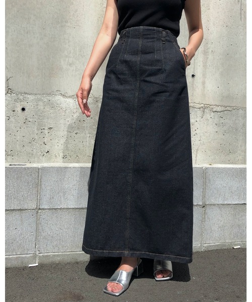 定番のデニムもタイトシルエットのスカートにすることで新鮮なスタイリングが完成します。